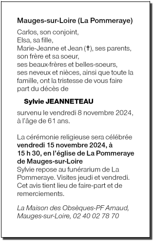 Née à Beaupreau (49600, France) le vendredi 19 juillet 1963