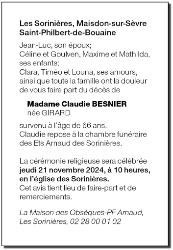 Décédée à Nantes (44000, France) le lundi 18 novembre 2024 à l'âge de 66 ans