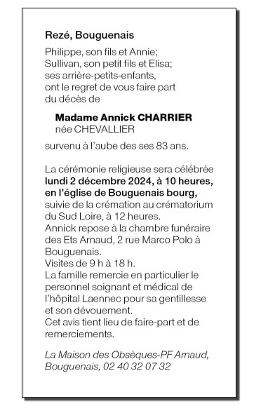 Décédée à « Localité inconnue »  (France) le mardi 26 novembre 2024 à l'âge de 82 ans