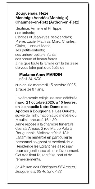 Madame Anne MANDIN née LAUNAY