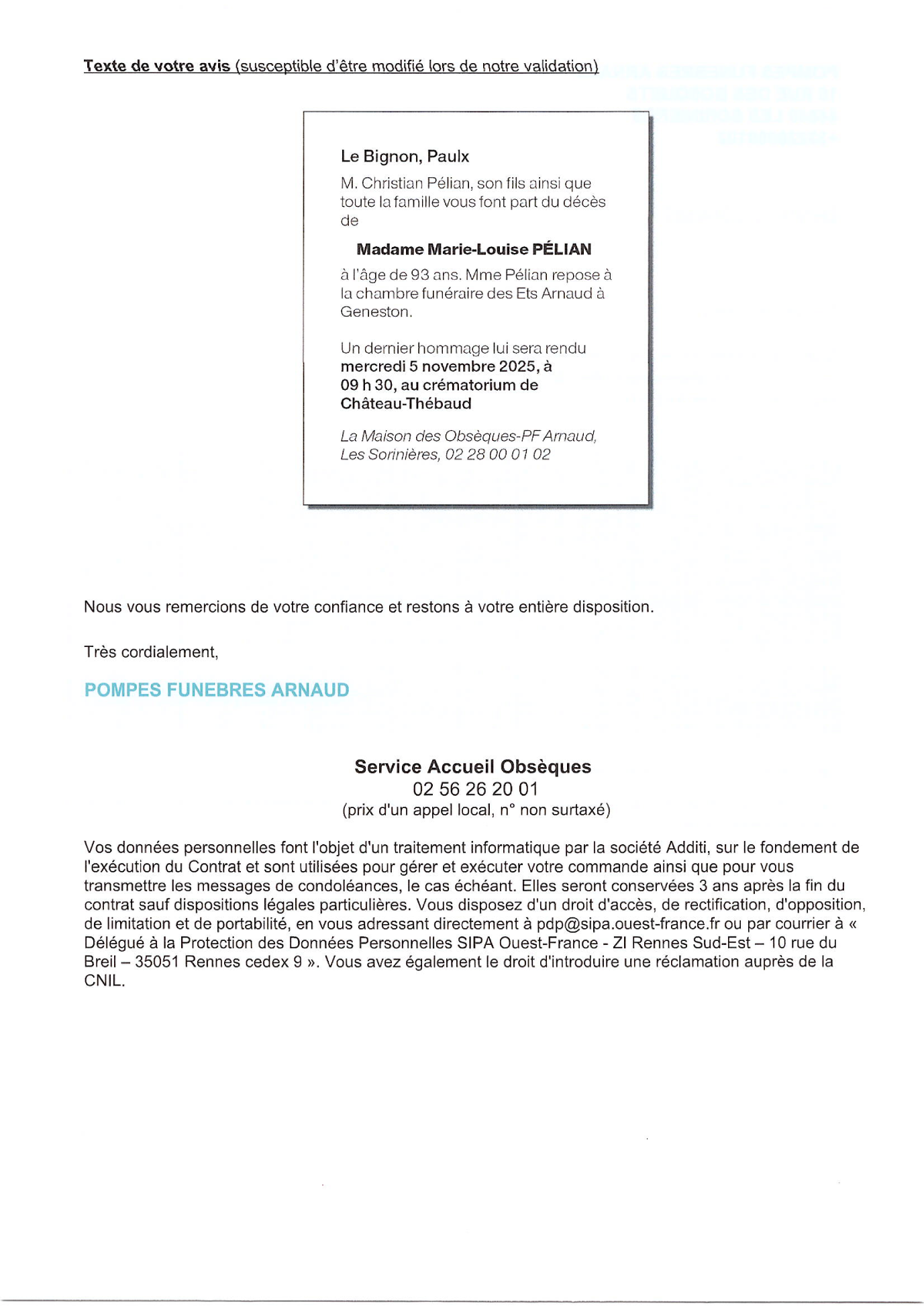Annonce nécrologique
