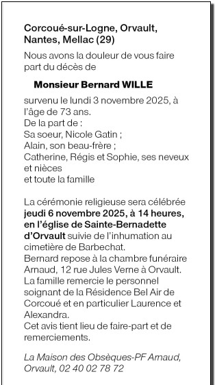 Décédé à Corcoué-sur-Logne (44650, France) le lundi 3 novembre 2025 à l'âge de 73 ans