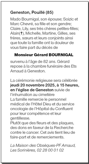 Décédé à Nantes (44200, France) le dimanche 16 novembre 2025 à l'âge de 82 ans