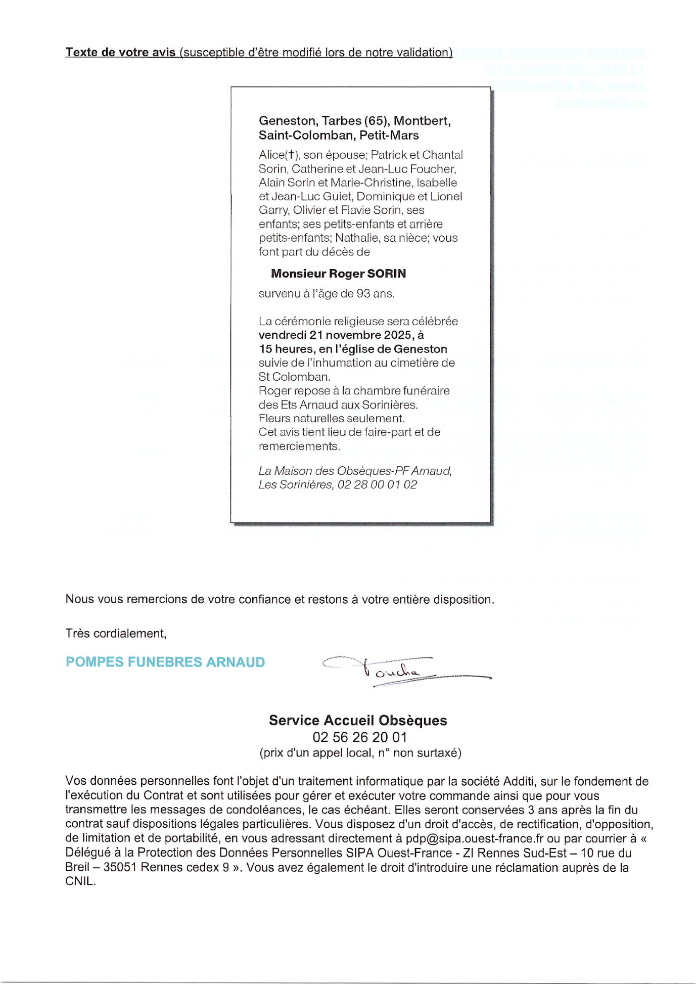 Annonce nécrologique