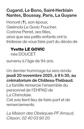 Madame Yvette LA GOVIC née DOUCET