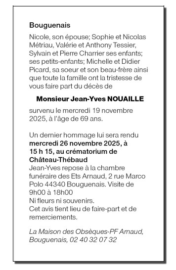 Décédé à Nantes (44000, France) le mercredi 19 novembre 2025 à l'âge de 69 ans