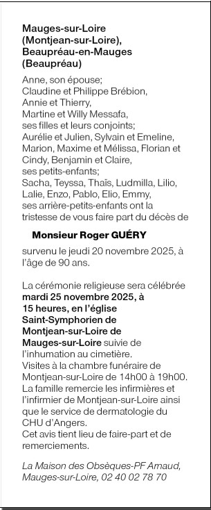 Décédé à Angers (49000, France) le jeudi 20 novembre 2025 à l'âge de 90 ans