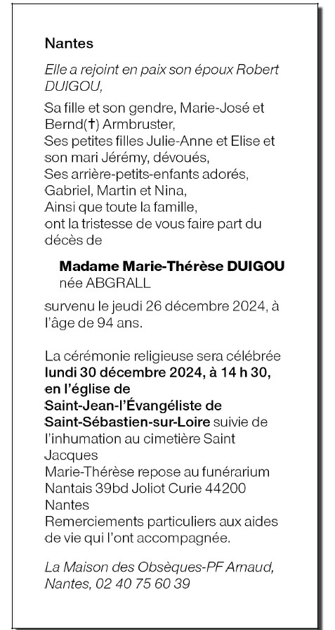 Madame Marie-Thérèse DUIGOU née ABGRALL
