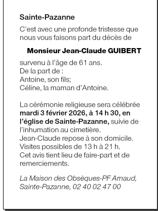 Décédé à Sainte-Pazanne (44680, France) le mercredi 28 janvier 2026 à l'âge de 61 ans