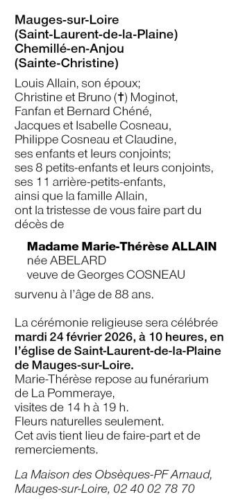 Madame Marie-Thérèse ALLAIN née ABELARD