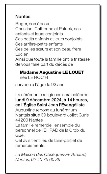 Décédée à Nantes (44200, France) le mardi 3 décembre 2024 à l'âge de 93 ans