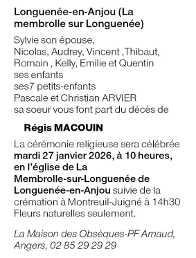 Décédé à Angers (49000, France) le lundi 19 janvier 2026 à l'âge de 66 ans