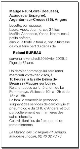 Décédé à Angers (49000, France) le vendredi 20 février 2026 à l'âge de 76 ans
