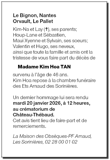 Décédée à Nantes (44000, France) le samedi 10 janvier 2026 à l'âge de 46 ans