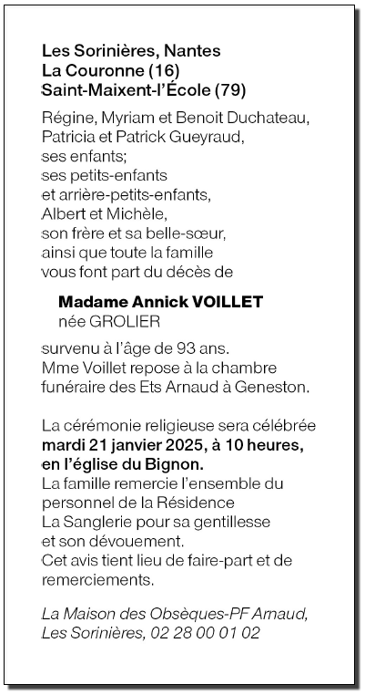 Madame Annick VOILLET née GROLIER