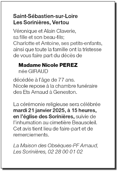 Madame Nicole PEREZ née GIRAUD