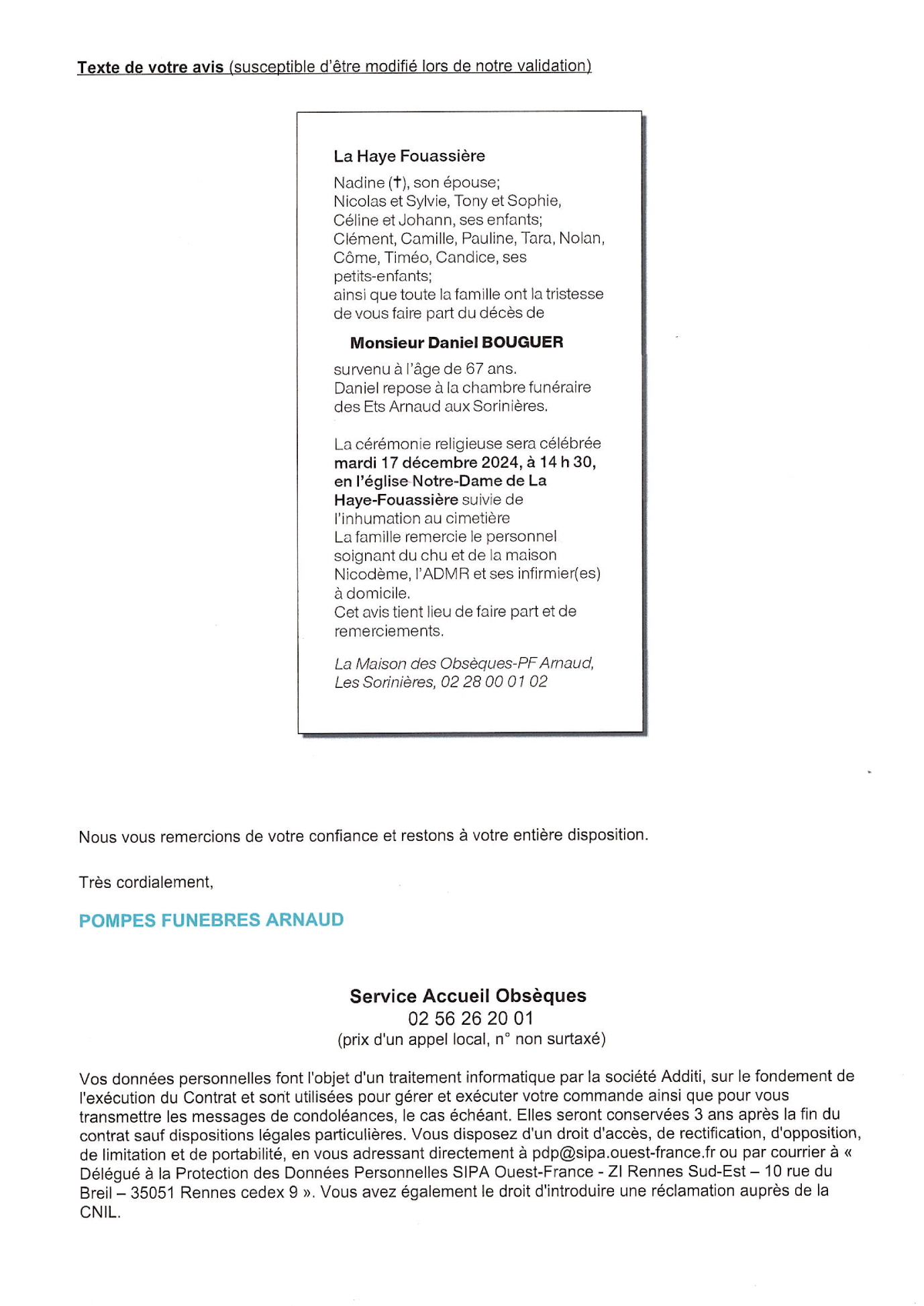 Annonce nécrologique