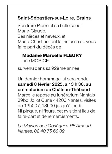 Décédée à Saint-Sébastien-sur-Loire (44230, France) le dimanche 2 février 2025 à l'âge de 91 ans