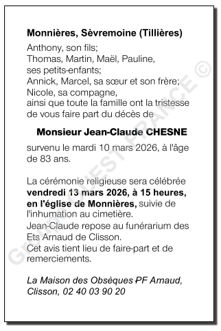 Décédé à Gétigné (44190, France) le mardi 10 mars 2026 à l'âge de 83 ans