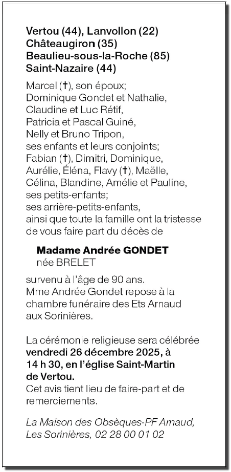Décédée à Nantes (44000, France) le lundi 22 décembre 2025 à l'âge de 90 ans