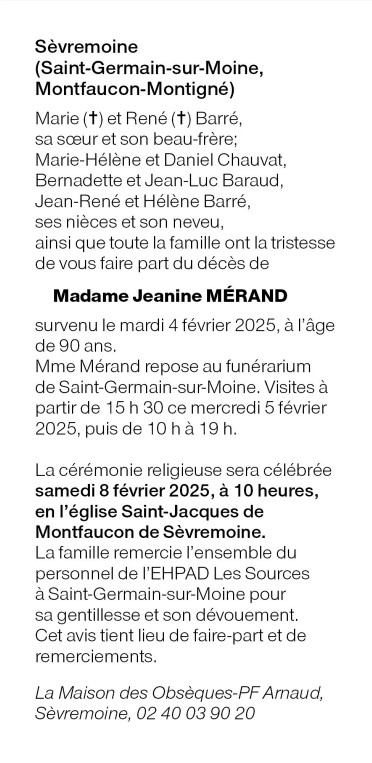 Décédée à Saint Germain sur Moine