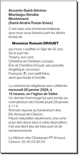 le dimanche 18 janvier 2026 à l'âge de 42 ans