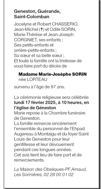 Veuve de Monsieur Joseph SORIN