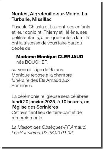 Madame Monique CLERJAUD née BOUCHER