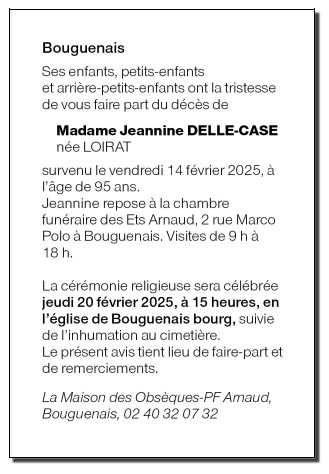 Décédée à Bouguenais (44340, France) le vendredi 14 février 2025 à l'âge de 95 ans
