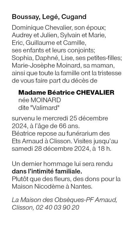 Décédée à Nantes (44000, France) le mercredi 25 décembre 2024 à l'âge de 66 ans