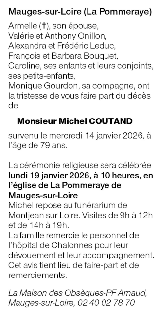 Décédé à Chalonnes-sur-Loire (49290, France) le mercredi 14 janvier 2026 à l'âge de 79 ans