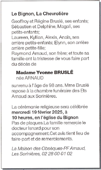Madame Yvonne BRUSLÉ née ARNAUD