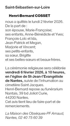 Décédé à Nantes (44200, France) le lundi 2 février 2026 à l'âge de 89 ans