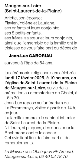 Décédé à Mauges-sur-Loire (49290, France) le mercredi 12 février 2025 à l'âge de 64 ans