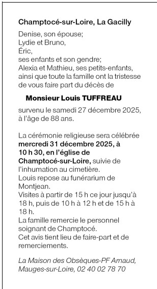 Décédé à Angers (49000, France) le samedi 27 décembre 2025 à l'âge de 88 ans