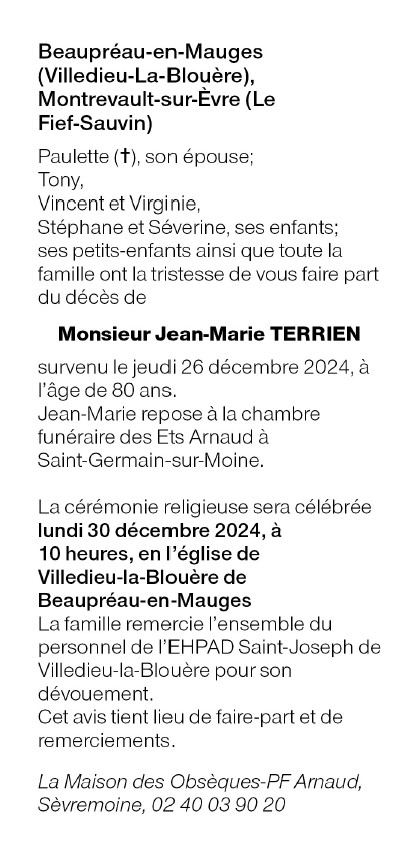 Décédé à Villedieu la Blouère (49450, France) le jeudi 26 décembre 2024 à l'âge de 80 ans