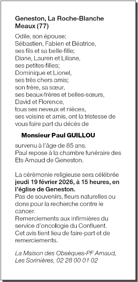 Décédé à Nantes (44200, France) le dimanche 15 février 2026 à l'âge de 85 ans