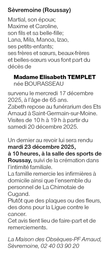 Madame Elisabeth TEMPLET née BOURASSEAU