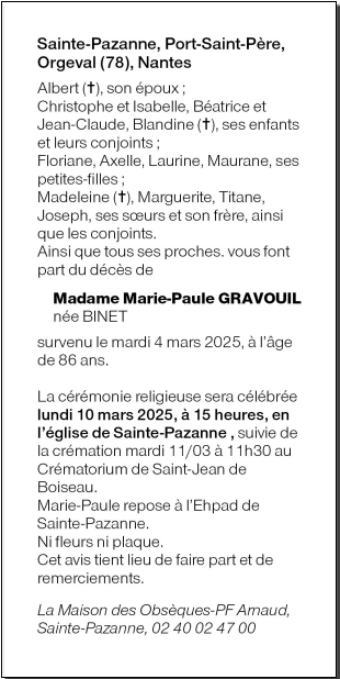 Madame Marie-Paule GRAVOUIL née BINET