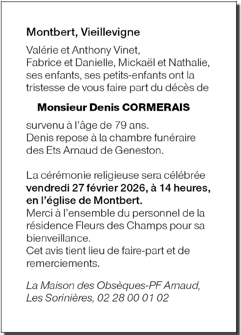 Décédé à La Planche (44140, France) le mardi 24 février 2026 à l'âge de 79 ans