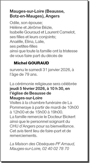 Décédé à Angers (49000, France) le samedi 31 janvier 2026 à l'âge de 79 ans