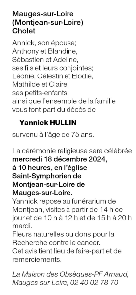 Décédé à Angers (49000, France) le dimanche 15 décembre 2024 à l'âge de 75 ans